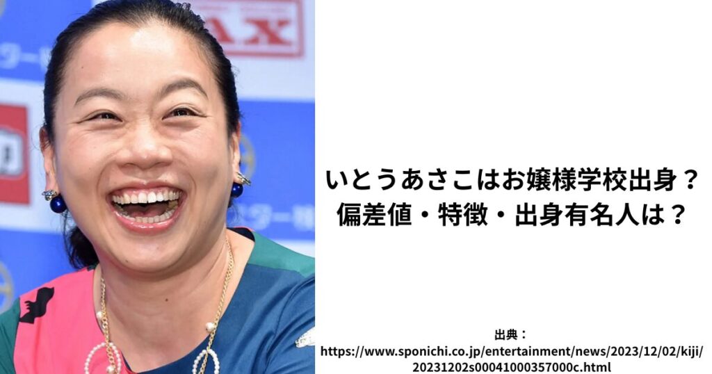 お笑い芸人として活躍するいとうあさこさん。 実は超名門のお嬢様学校出身だということをご存知でしょうか? 今回は、いとうあさこさんの学歴や出身校である雙葉学園の特徴、偏差値、そして同じ学校を卒業した有名人について詳しくリサーチしてみました。 ... -